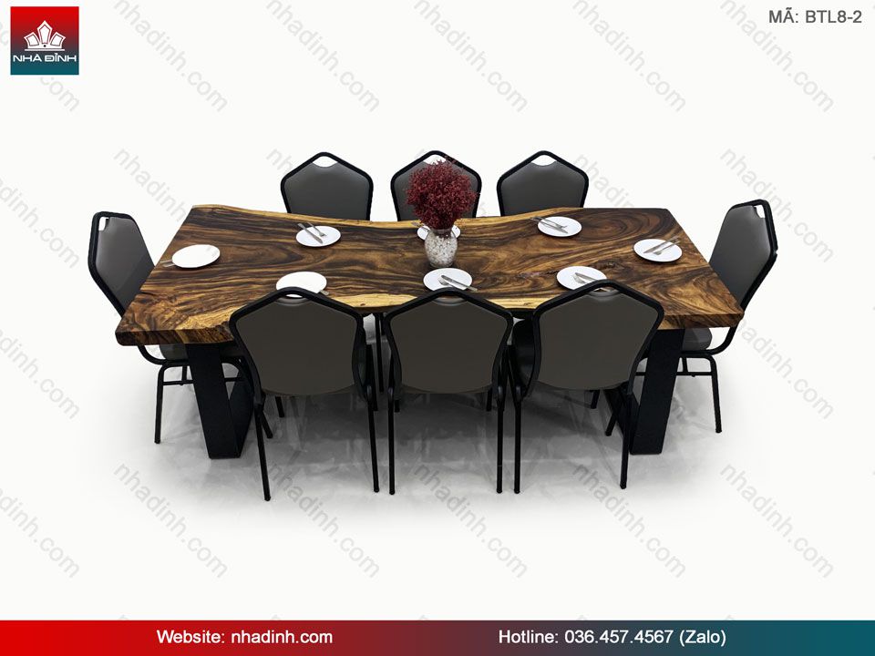 Bộ bàn ăn gỗ Me Tây nguyên khối
