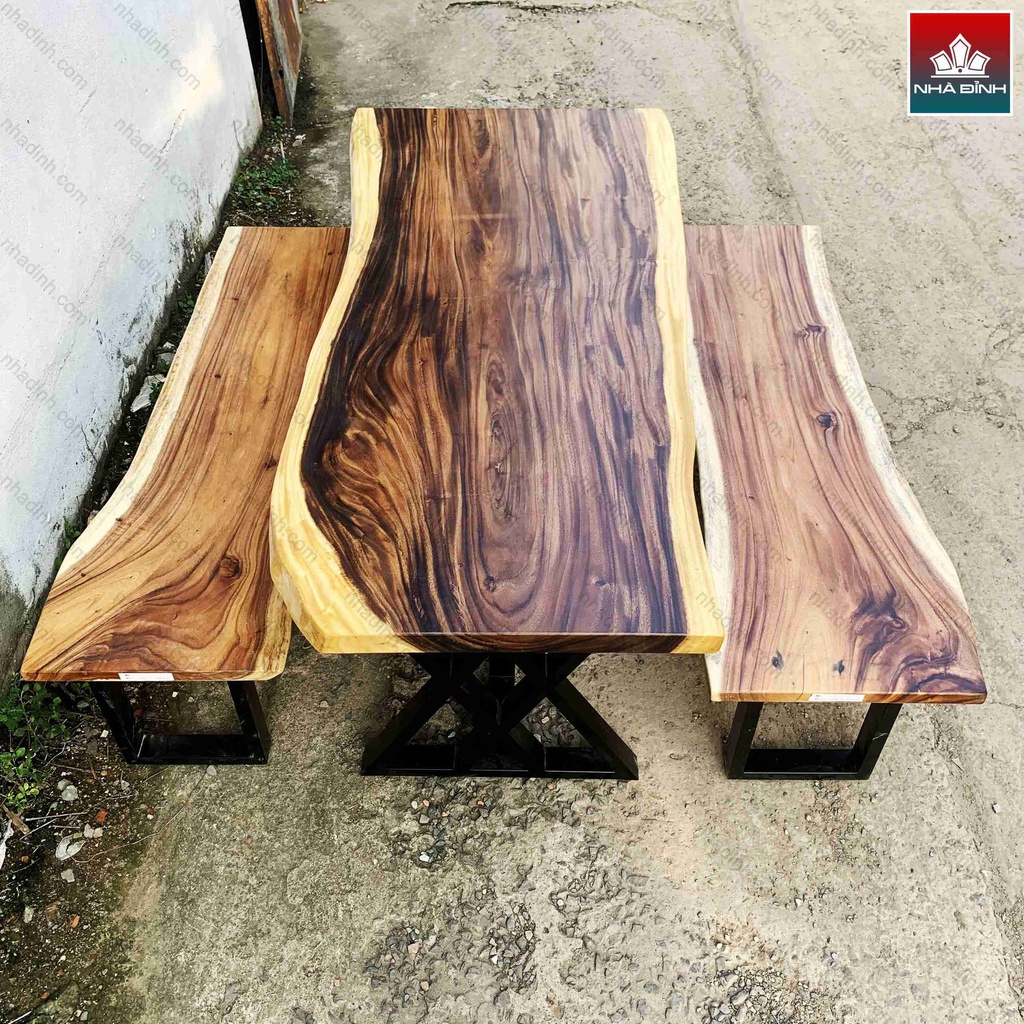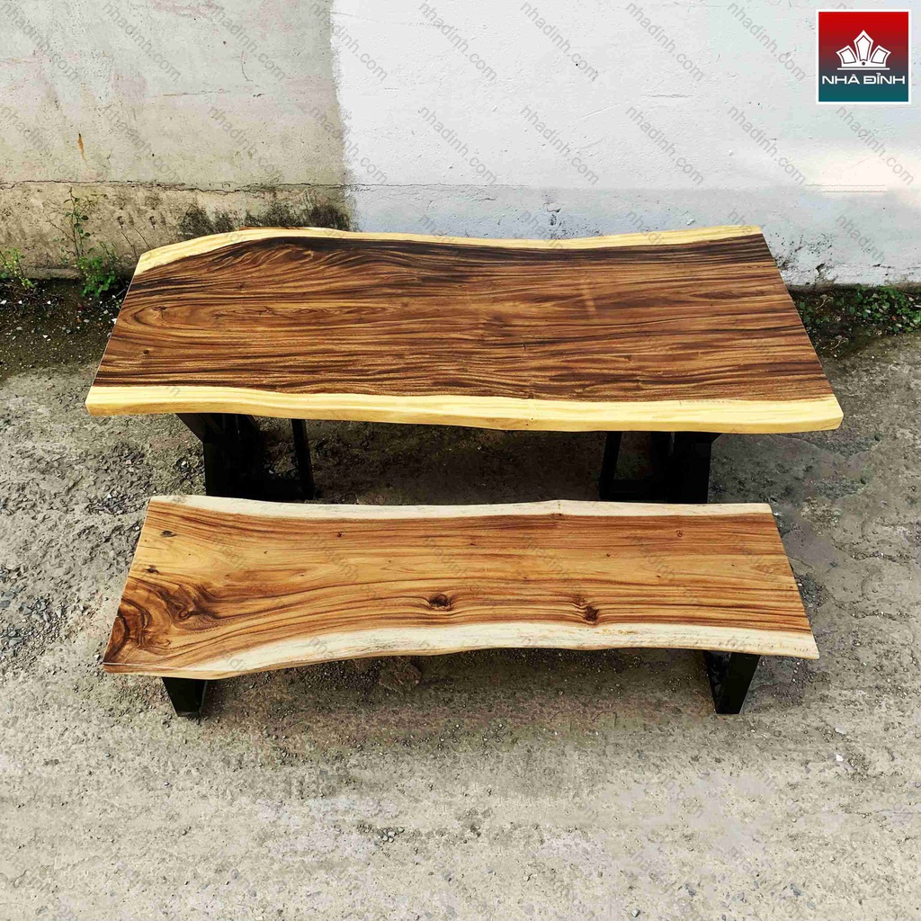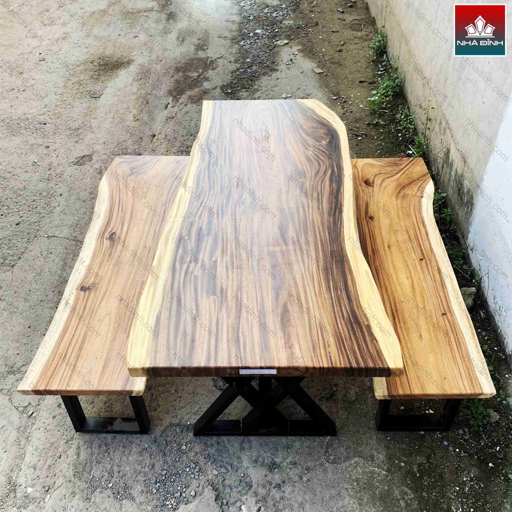Bàn 2 Băng Gỗ Me Tây Nguyên Khối Dài 180 Rộng 73-78-85 Cao 75 (cm)