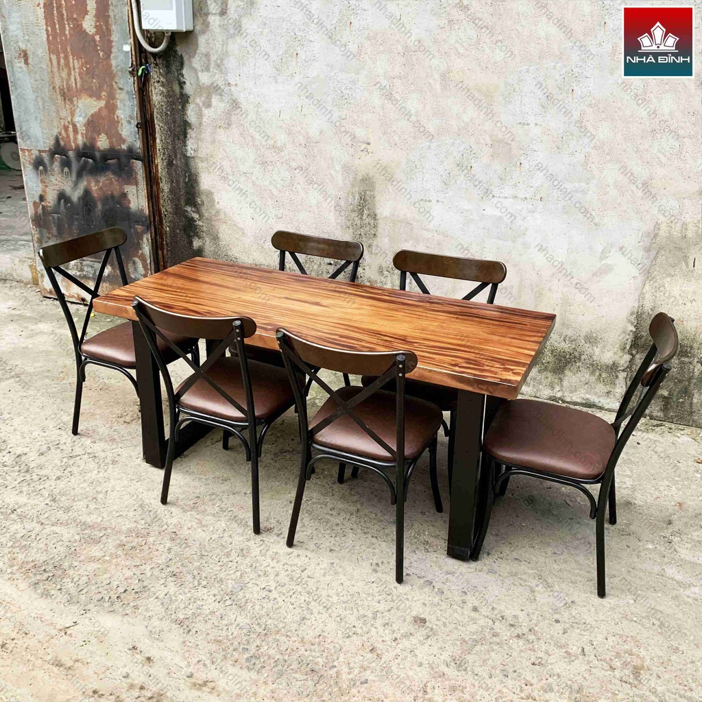 Bàn Ăn 6 Ghế Gỗ Me Tây Dài 160 Rộng 65 Cao 75 (cm)