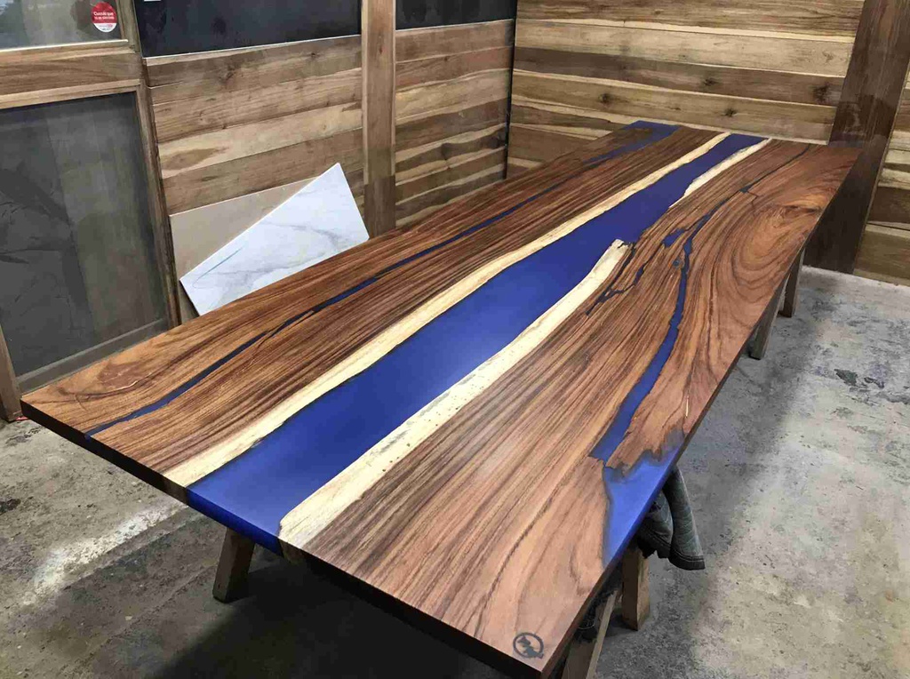 Bàn Ăn Gỗ Me Tây Đổ Epoxy Dài 300 Rộng 100 Dày 6 (cm)
