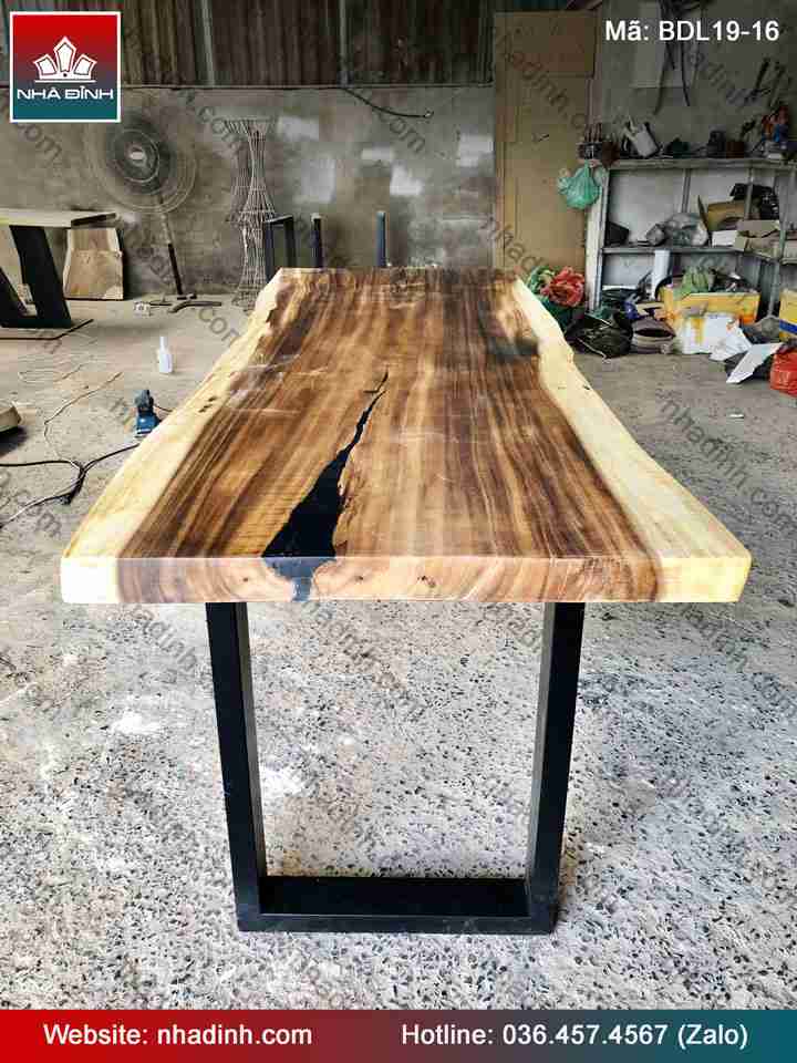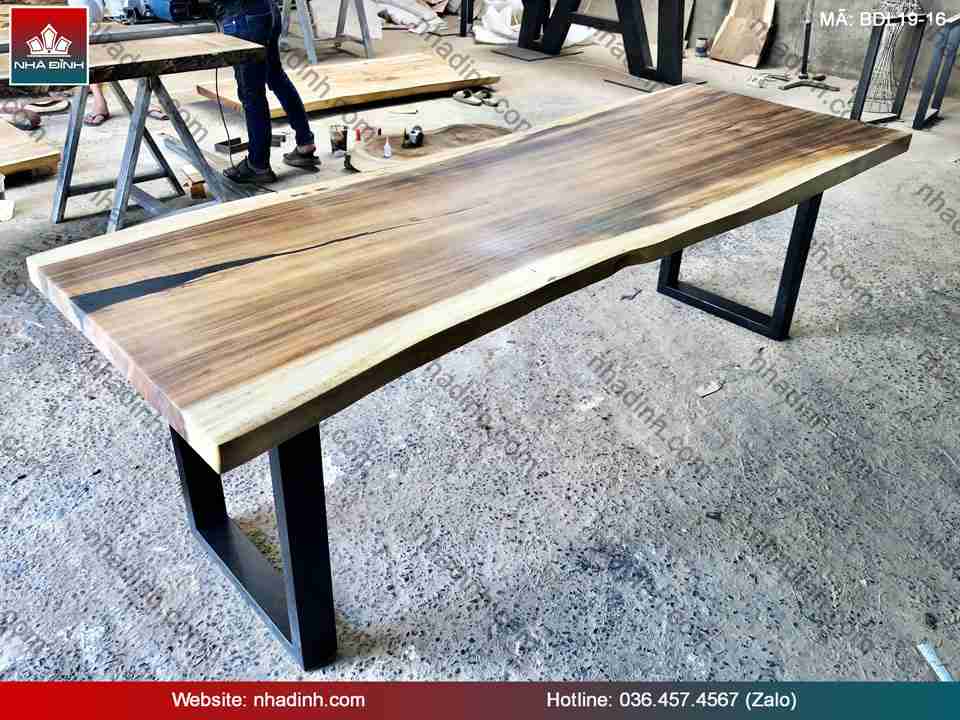 Bàn Ăn Gỗ Me Tây Nguyên Khối Dài 236 Rộng 85-72.5-75 Dày 5.5 (cm)