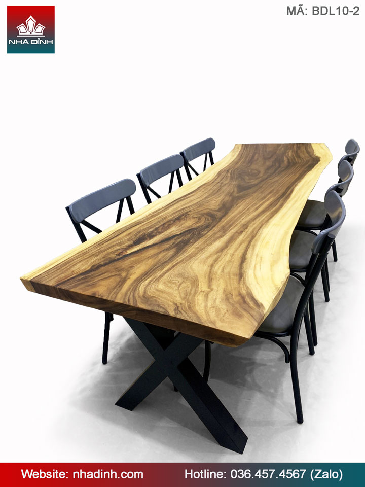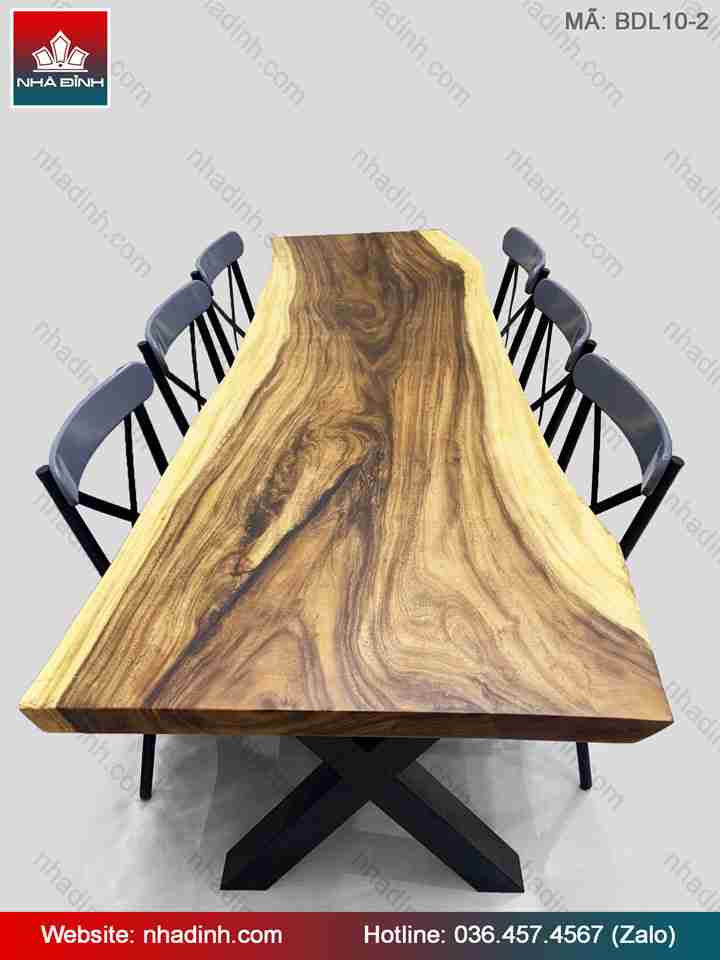 Bàn Ăn Gỗ Me Tây nguyên tấm Dài 228 Rộng 72-70-82 Dày 5 (cm)