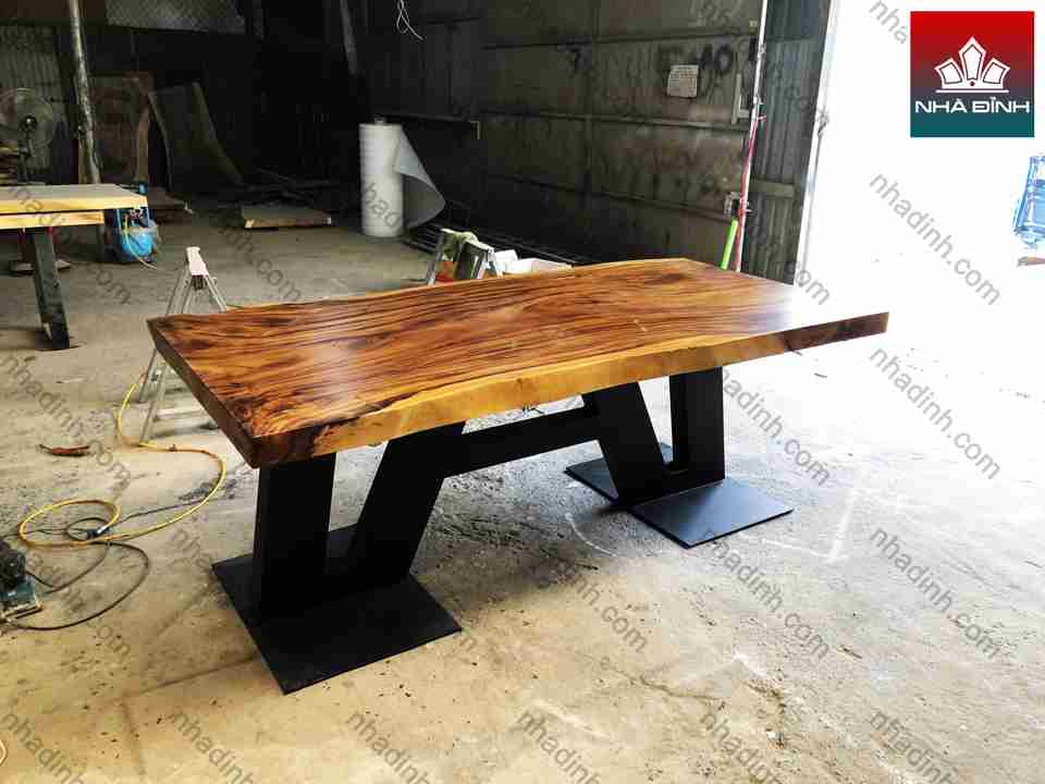 Bàn Ăn Gỗ Me Tây Nguyên Tấm Dài 205 Rộng 103-97-98 Dày 7 (cm)