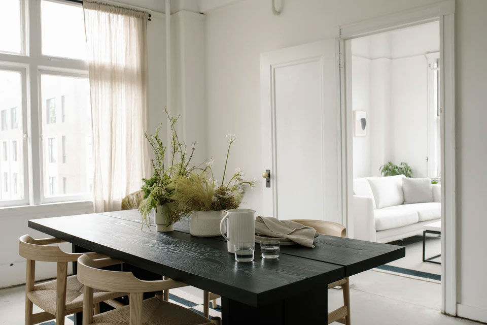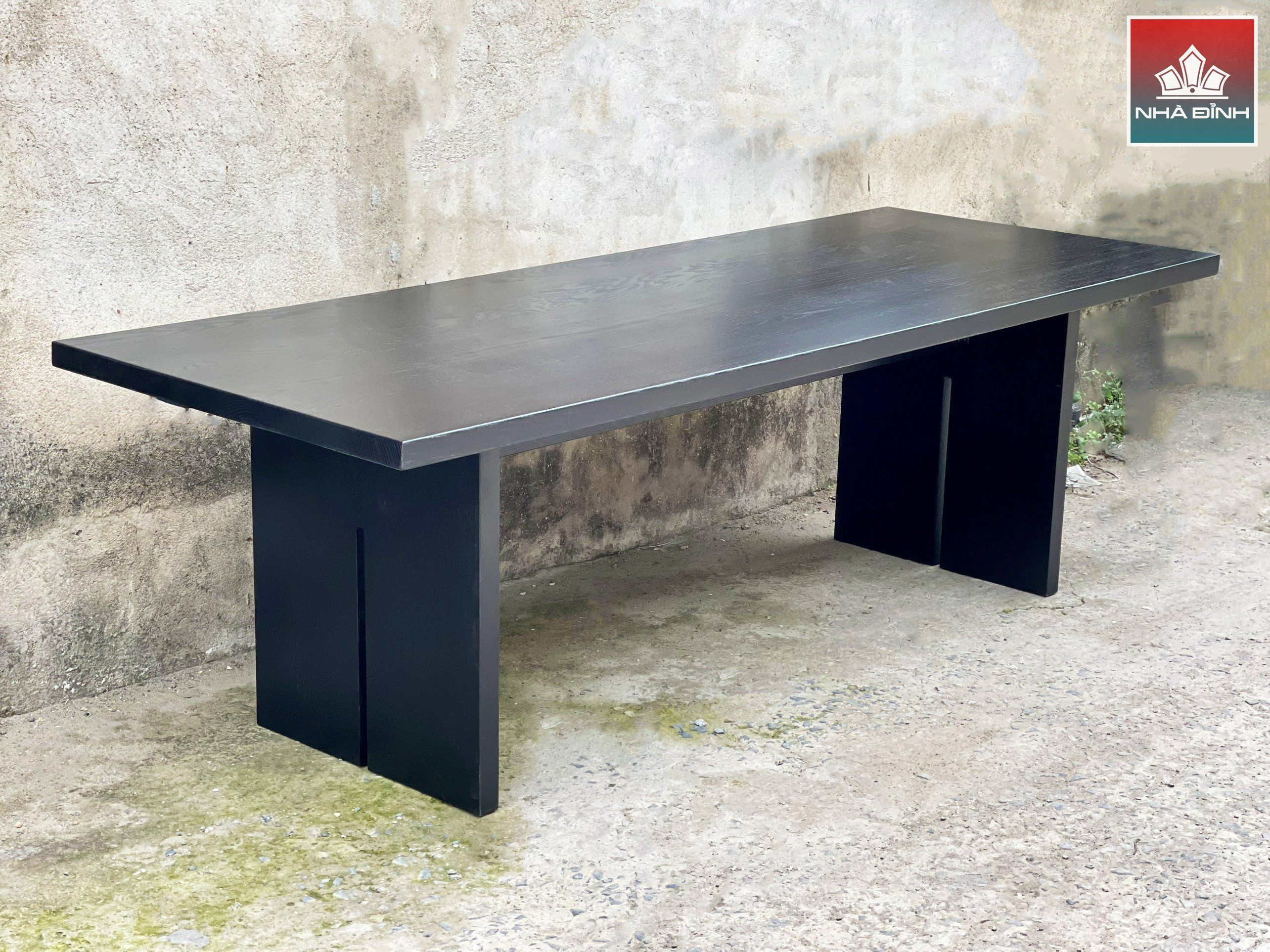 Bàn Ăn Gỗ Sồi (Oak) Sơn Đen Dài 200 Rộng 90 Cao 75 (cm)