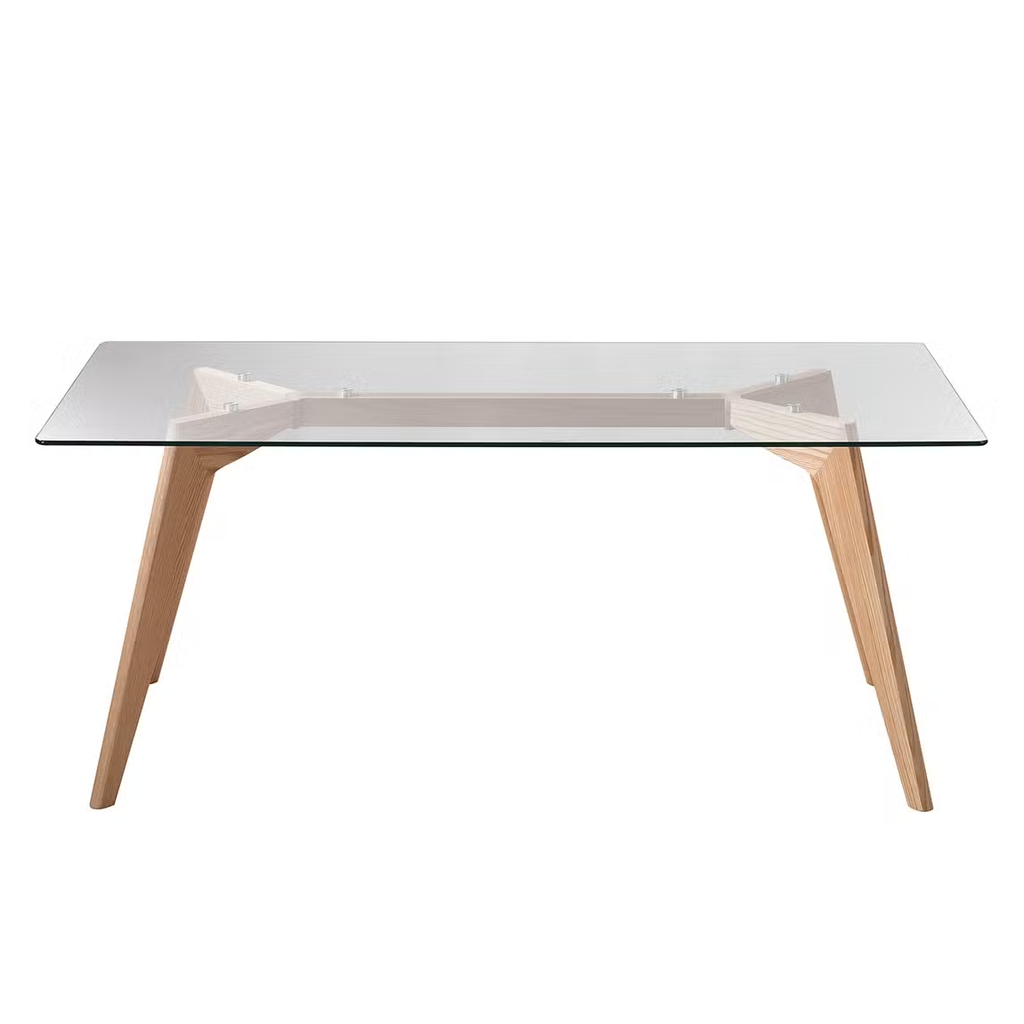 Bàn Ăn Mặt Kính Chân Gỗ Tần Bì Chân Gỗ Tần Bì Dài 180 Rộng 80 Cao 75 (cm)