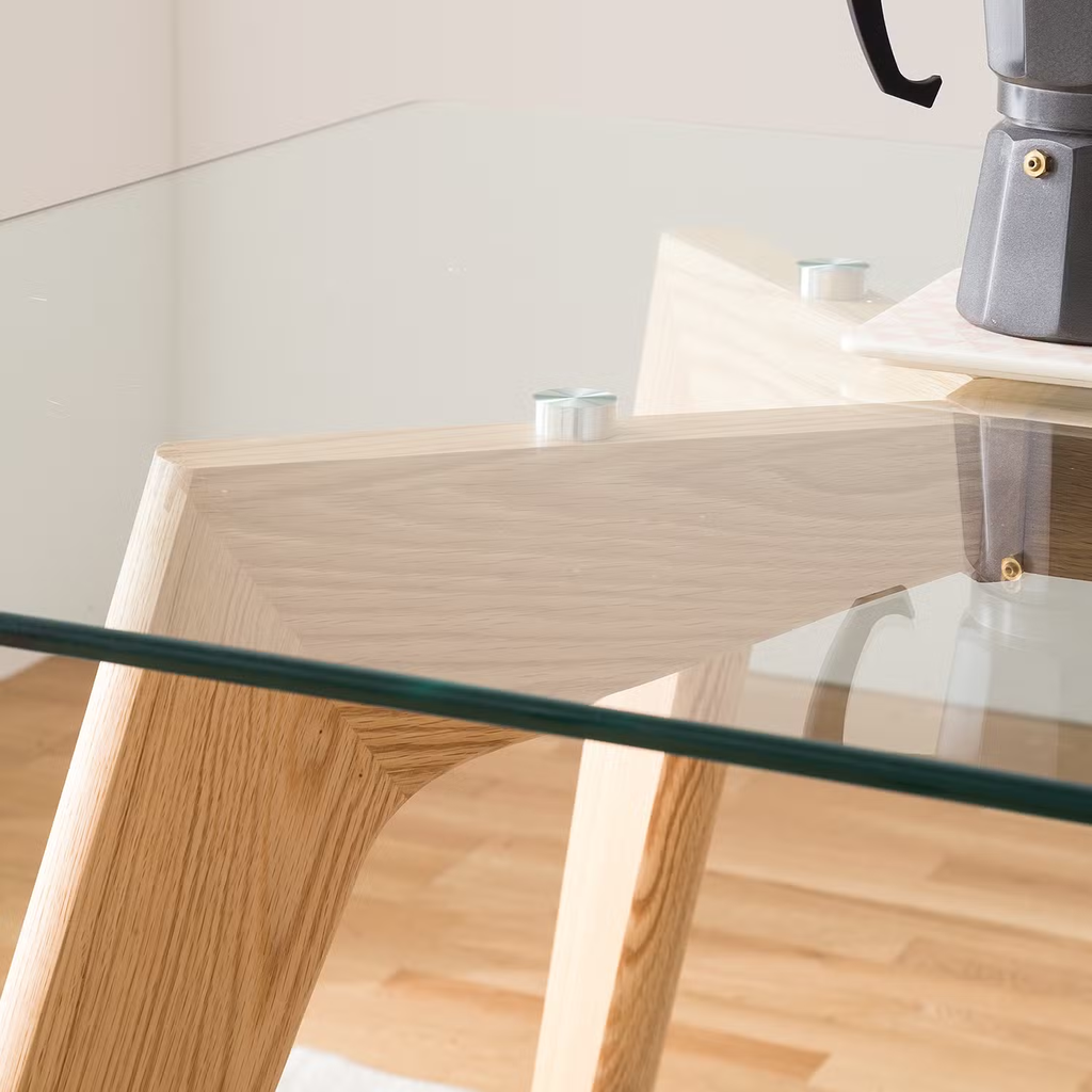 Bàn Ăn Mặt Kính Chân Gỗ Tần Bì Dài 180 Rộng 80 Cao 75 (cm)