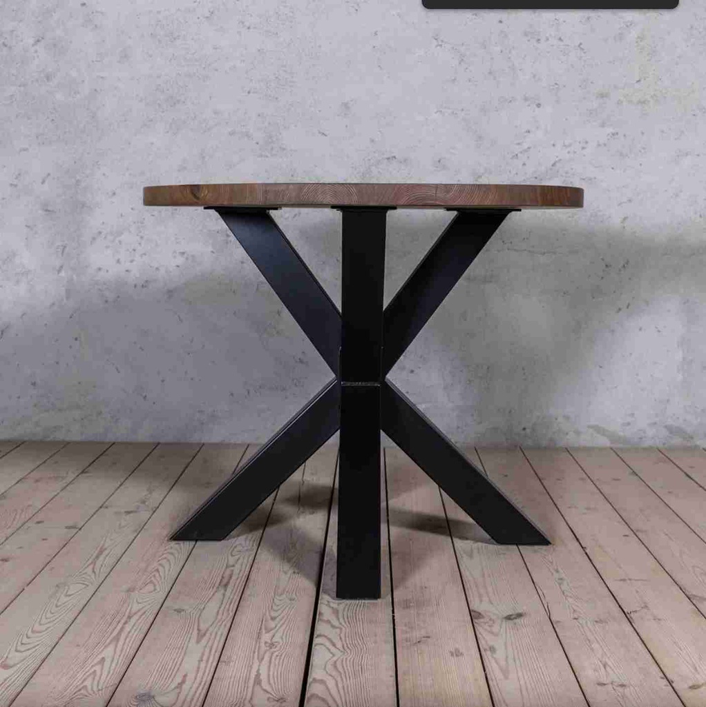 Bàn Ăn Tròn Gỗ Tần Bì Chân Sắt Hộp Đường Kính 80 Cao 75 (cm)
