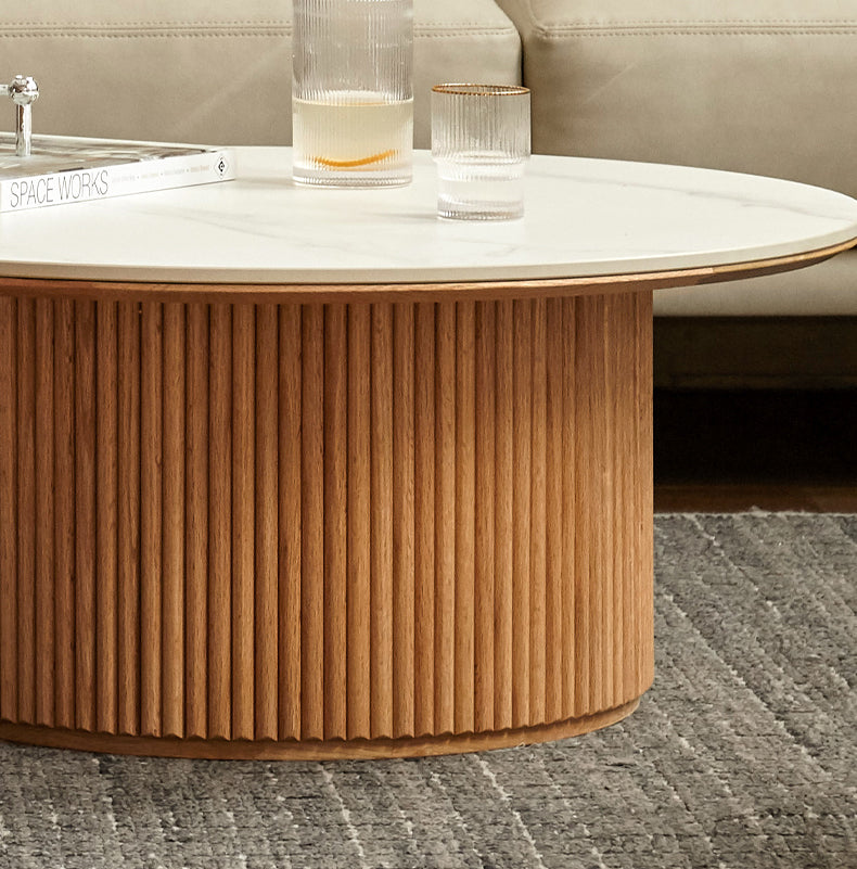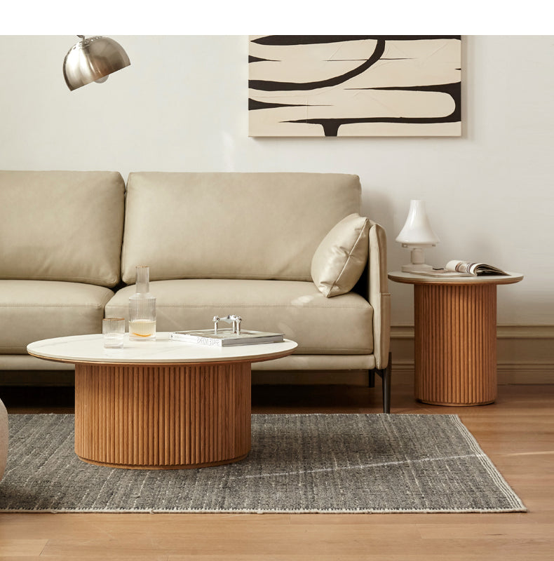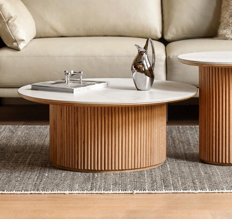 Bàn Coffee Gỗ Sồi Kết Hợp Mặt Đá Đường Kính 85 Cao 35 (сm)