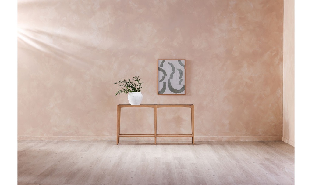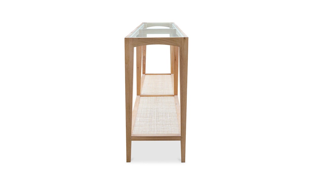 Bàn Console Mặt Kính Gỗ Sồi Kết Hợp Mây