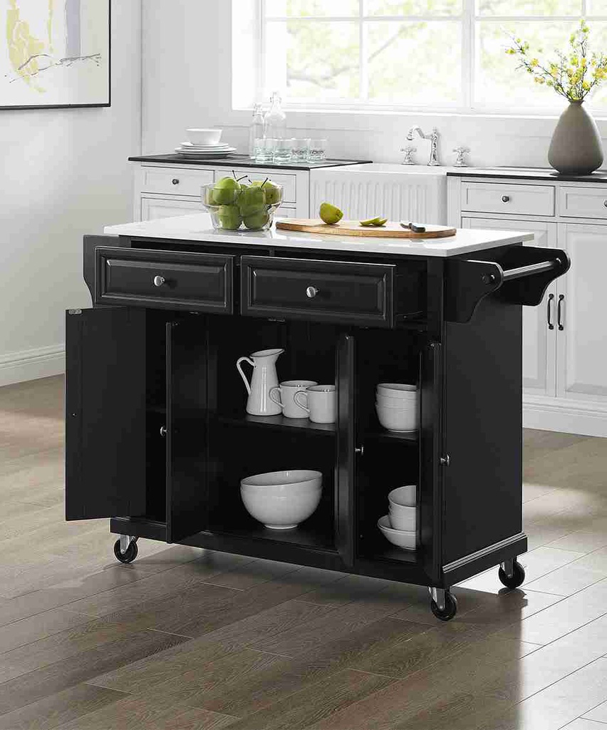 Bàn Đảo Bếp Mặt Đá Có Bánh Xe Gỗ Sồi (Oak)