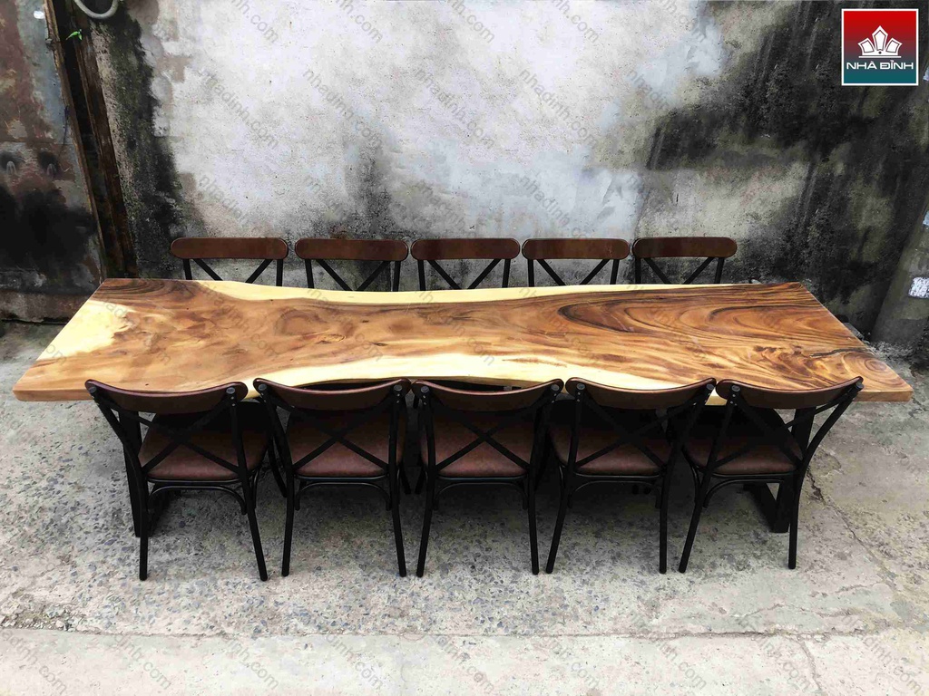 Bàn Gỗ Me Tây Nguyên Khối Dài 289 Rộng 85-67-82 Dày 5,2 Cao 75 (cm)