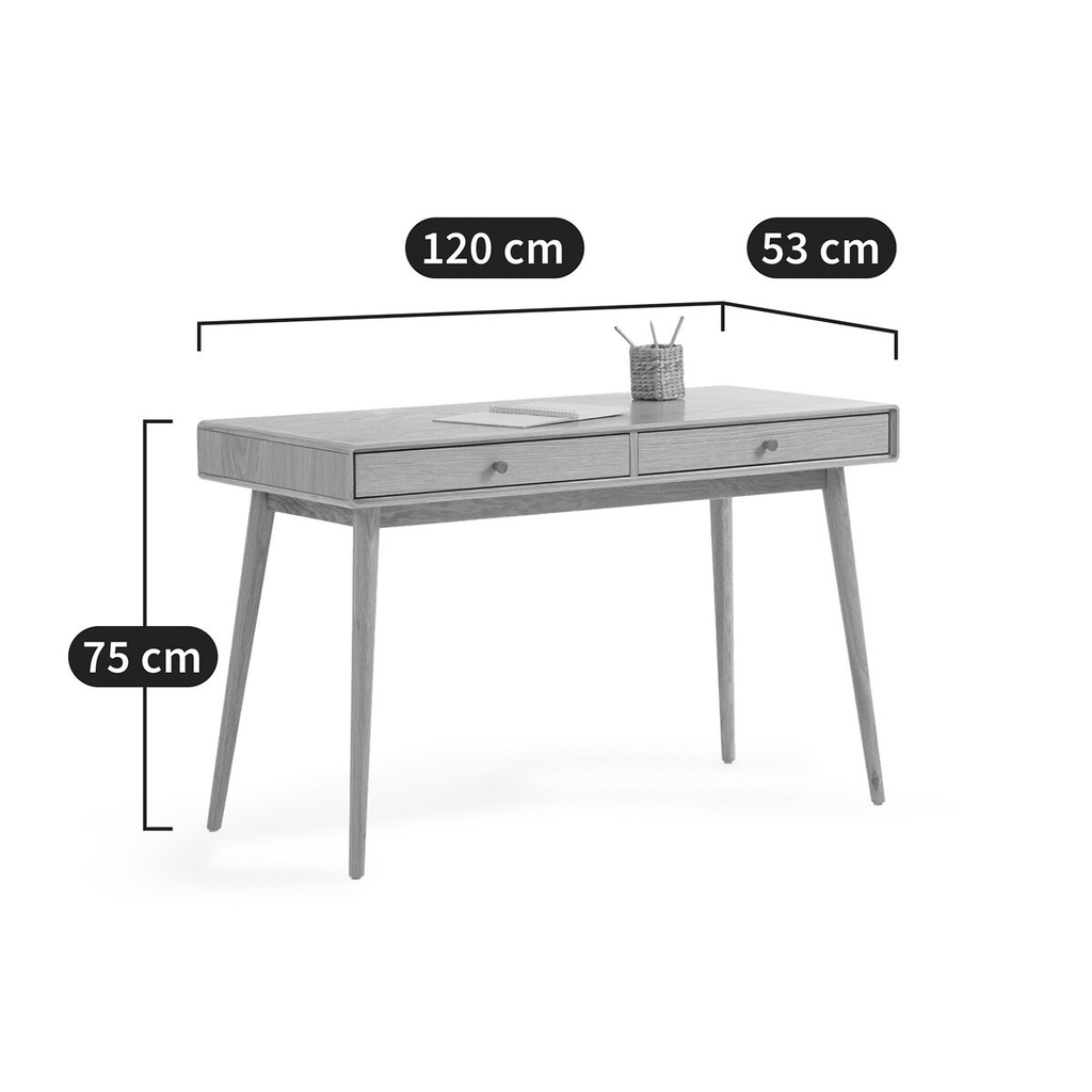 Bàn Làm Việc 2 Ngăn Gỗ Sồi Dài 120 Rộng 53 Cao 75 (cm)