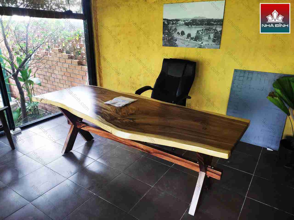 Bàn Làm Việc Gỗ Me Tây Nguyên Khối Dài 214 Rộng 73-84-72 Dày 5 Cao 75 (cm)