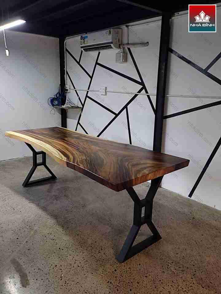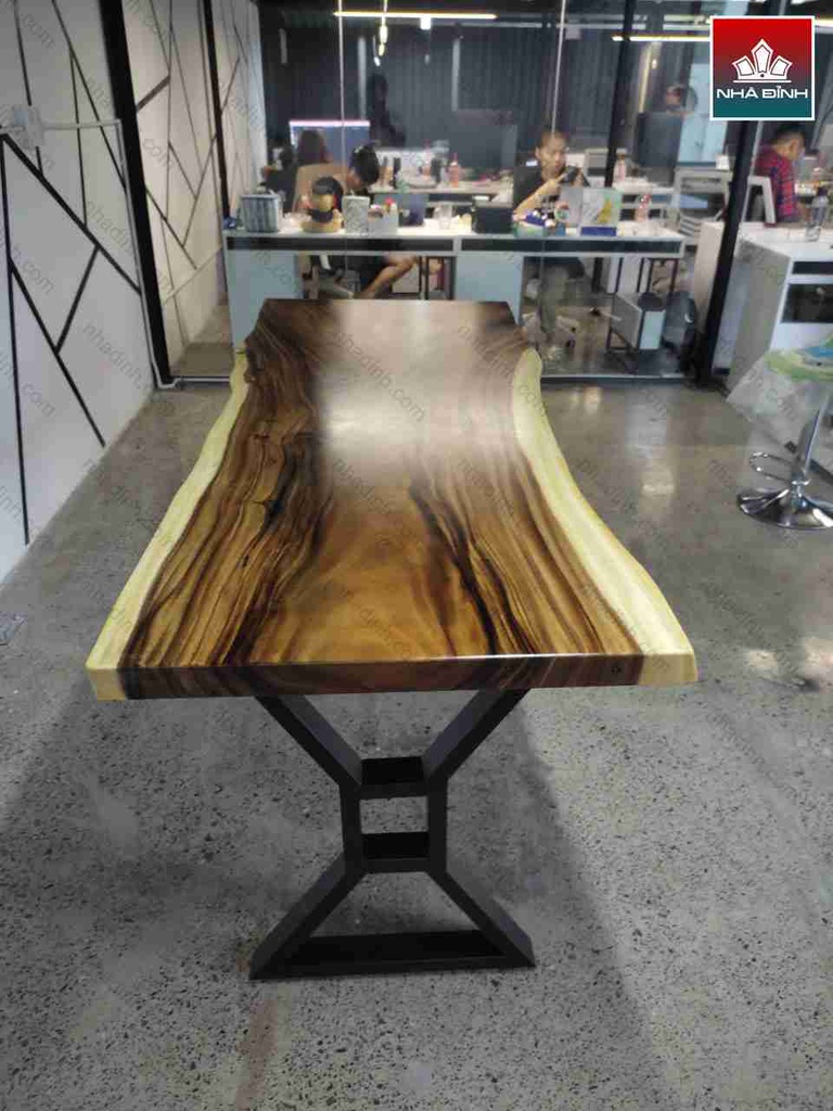 Bàn Làm Việc Gỗ Me Tây Nguyên Khối Dài 216 Rộng 77-74-84 Dày 5,5 Cao 75 (cm)