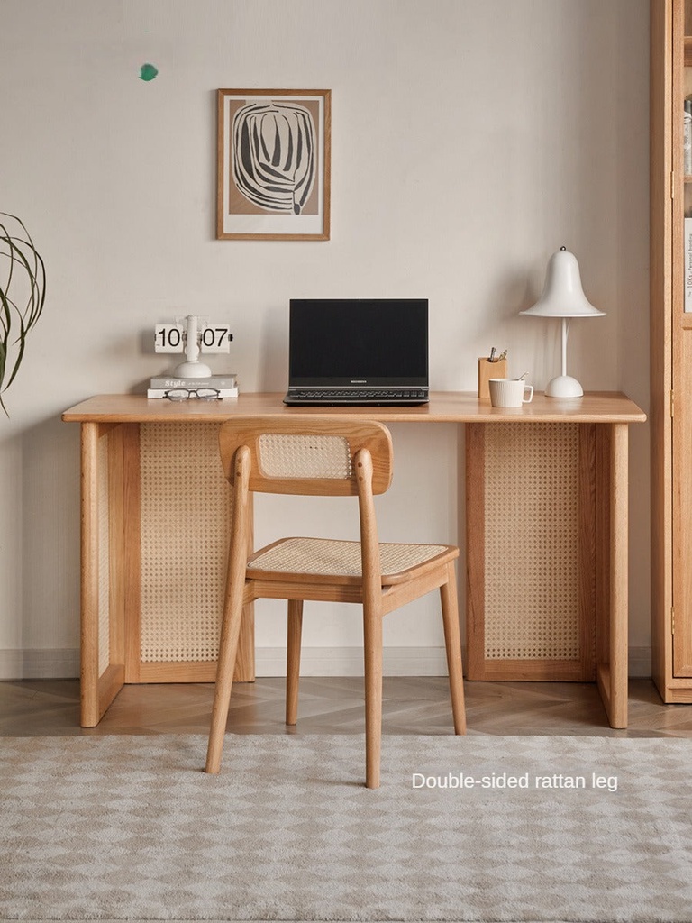 Bàn Làm Việc Gỗ Sồi Kết Hợp Mây