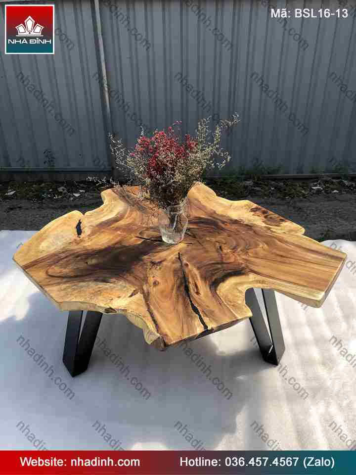 Bàn Sofa Gỗ Me Tây Nguyên Khối đường kính 980x940 dày 40 (mm)