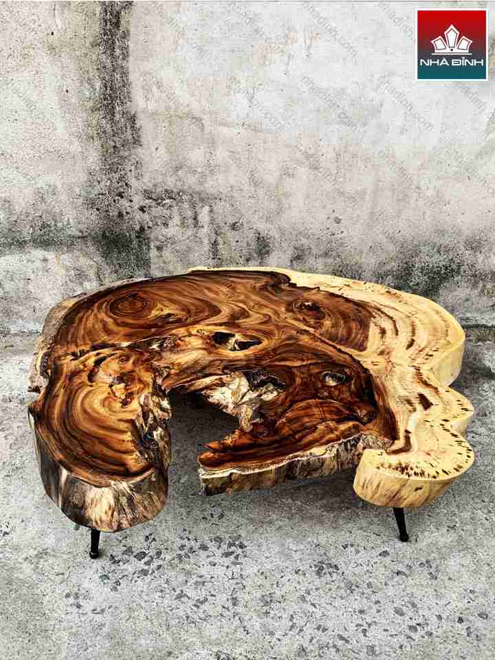 Bàn Trà Gỗ Me Tây Nguyên Khối Dài 120 Rộng 100 Dày 9,5 Cao 39.5 (cm)