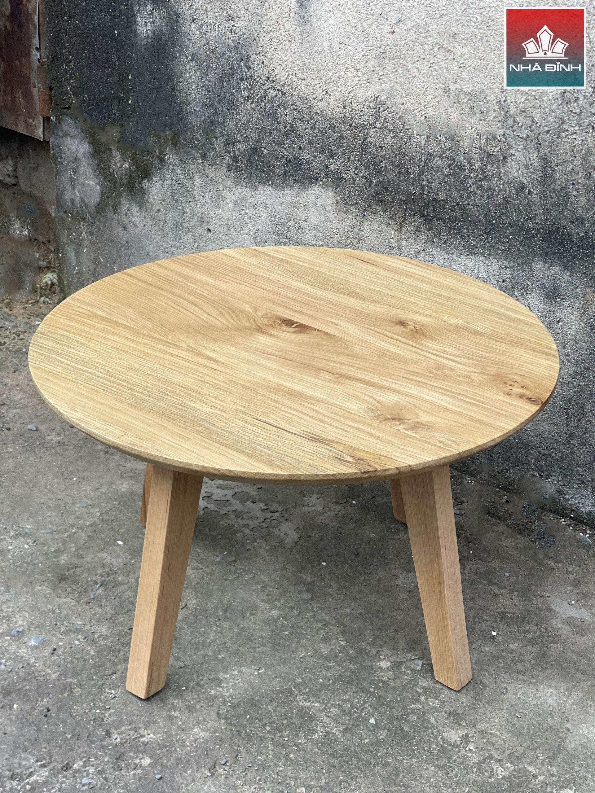Bàn Trà Gỗ Tần Bì Chân Gỗ Đường Kính 70 Dày 4 Cao 45 (cm)
