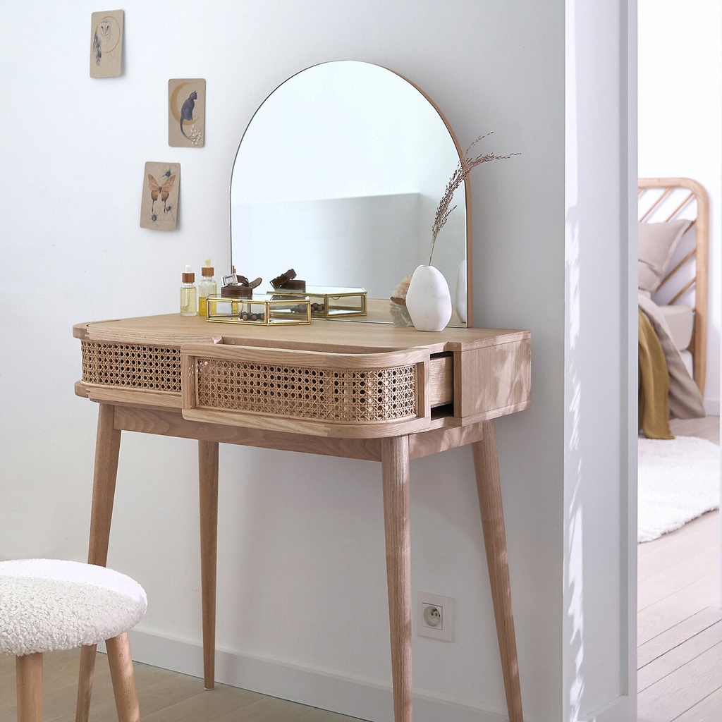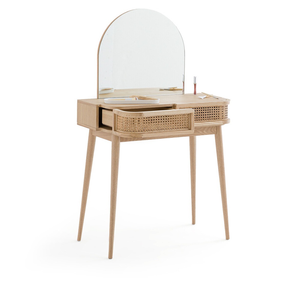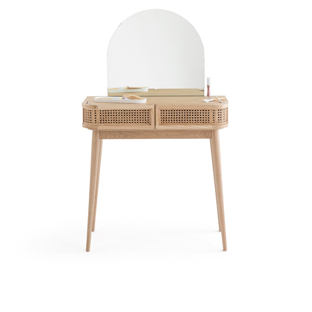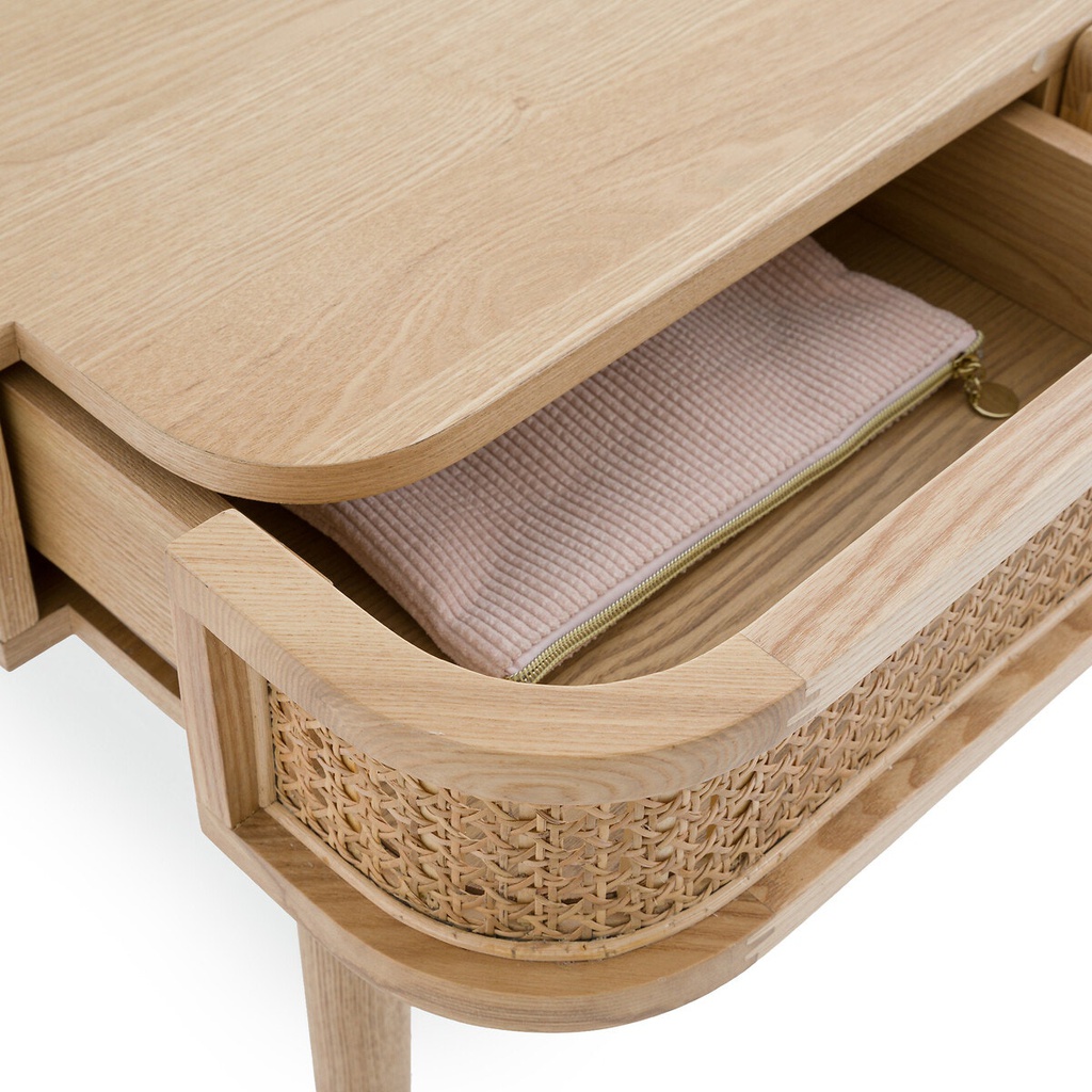 Bàn Trang Điểm 2 Ngăn Gỗ Sồi Kết Hợp Mây
