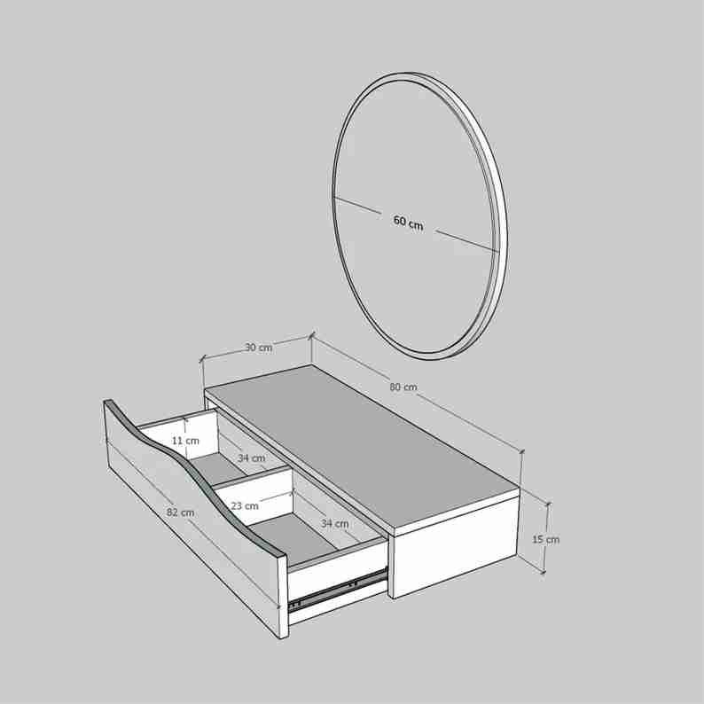 Bàn Trang Điểm Gỗ Sồi (Oak) Cao 15 Rộng 82 Sâu 30 (cm)