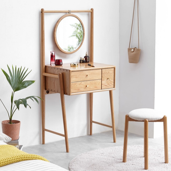 Bàn Trang Điểm Gỗ Sồi Rộng 75 Sâu 42 Cao 134 (cm)