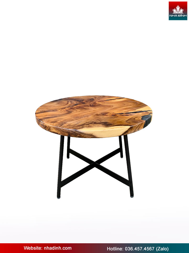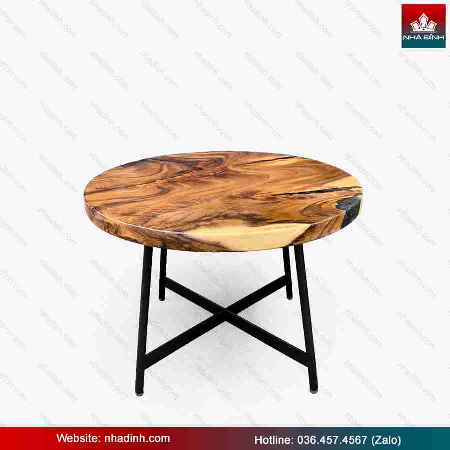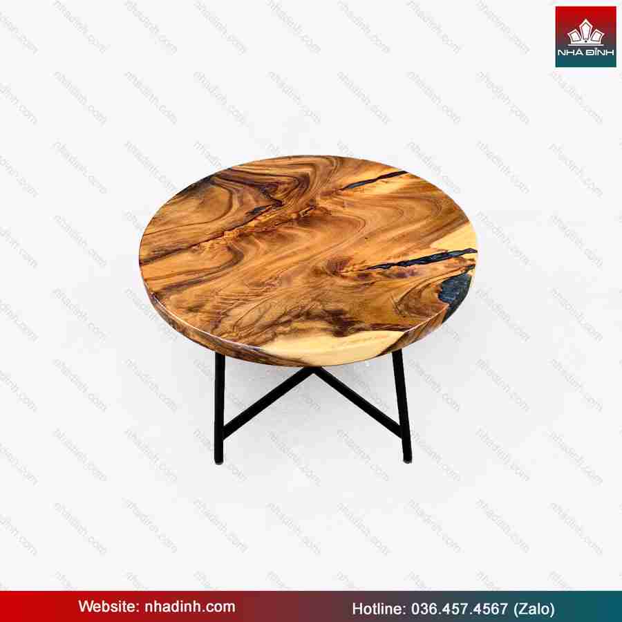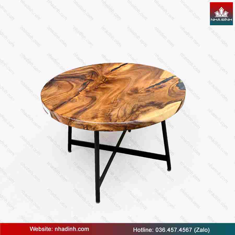 Bàn Tròn Gỗ Me Tây Nguyên Khối Đường Kính 70 Dày 4 Cao 44 (cm)
