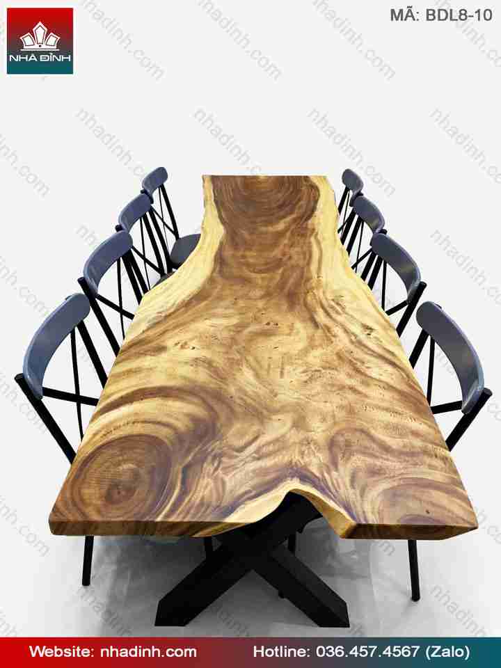 Bộ Bàn 8 Ghế Gỗ Me Tây Nguyên Khối dài 2m5 rộng 78-65-88 dày 4,5 (cm)