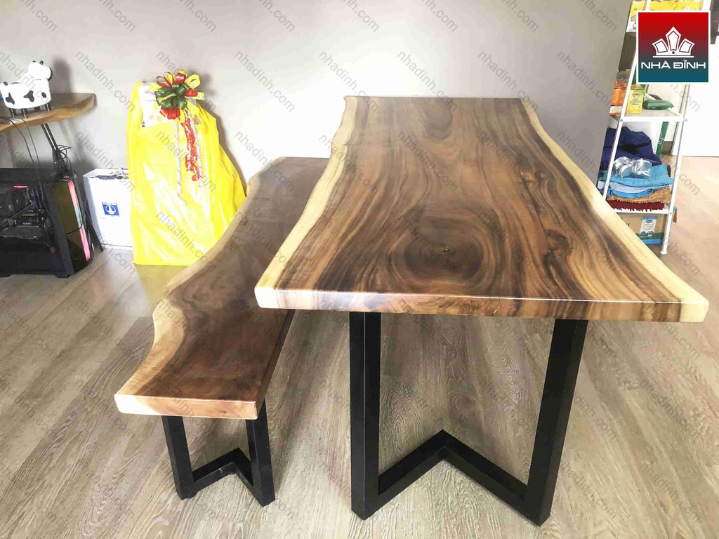 Bộ Bàn Ăn Gỗ Me Tây Nguyên Khối Dài 180 Rộng 75-80 (cm)