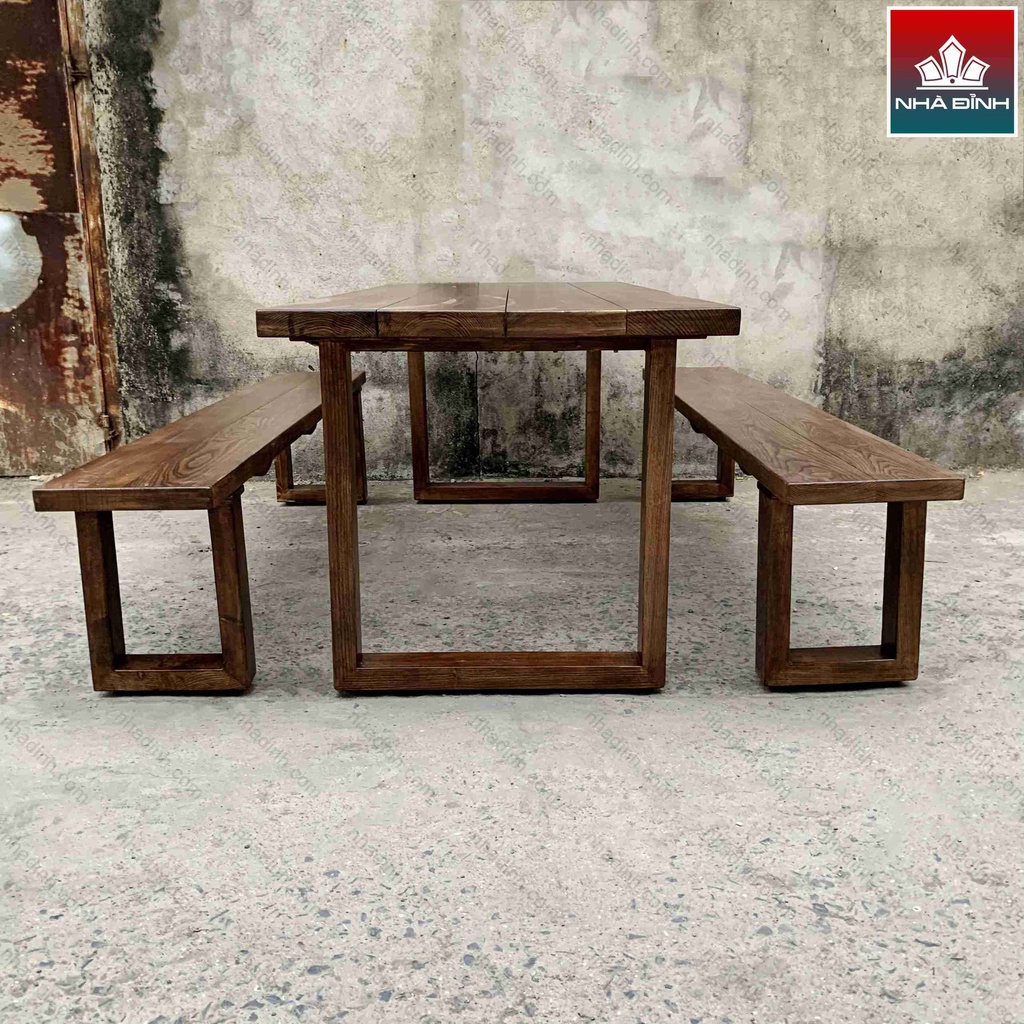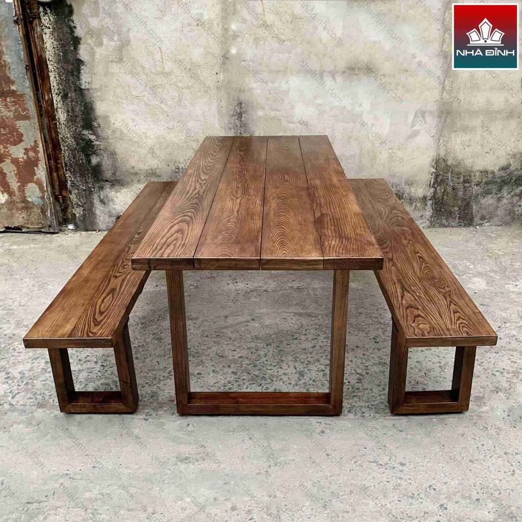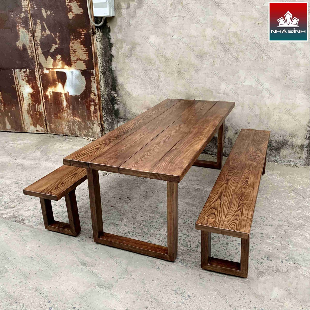 Bộ Bàn Ăn Gỗ Tần Bì ( Ash ) Giả Màu Gỗ Óc Chó Dài 200 Rộng 80 Cao 75 (cm)