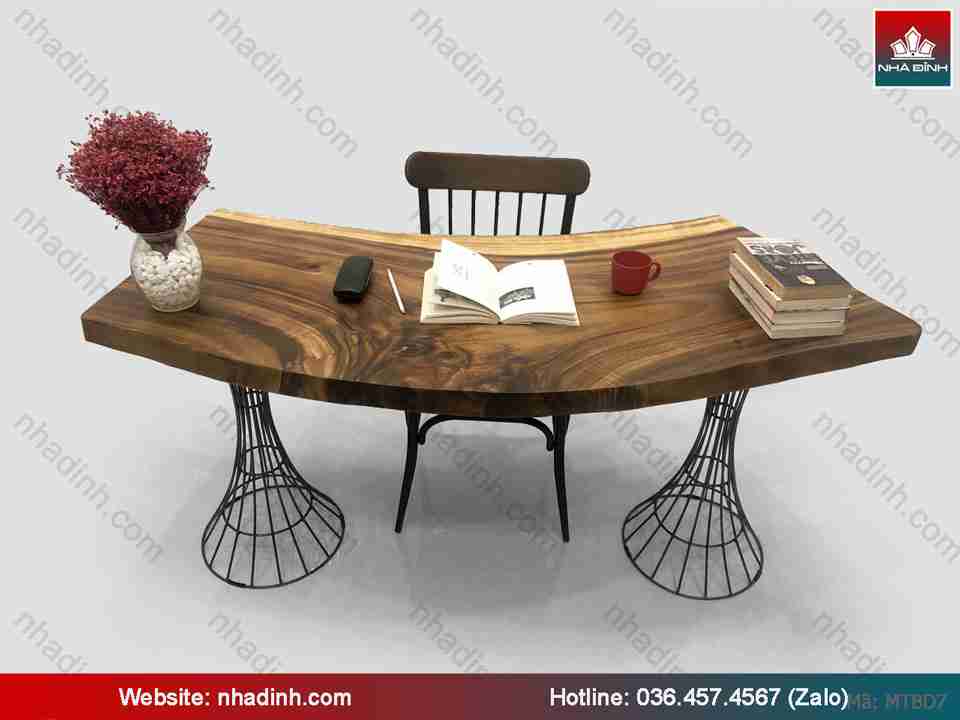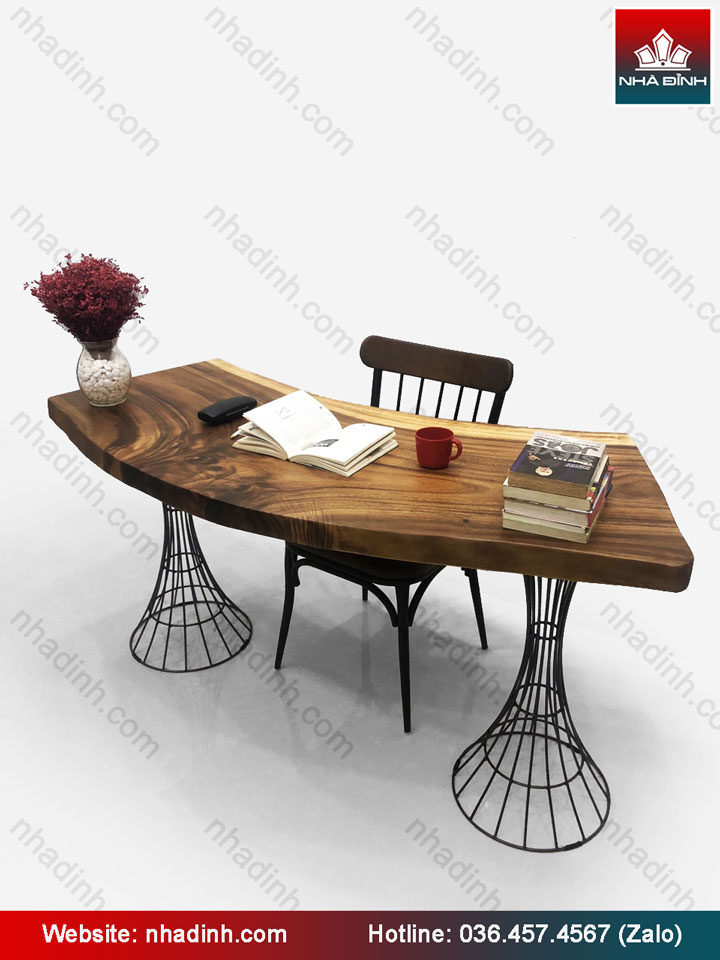 Bộ bàn ghế làm việc gỗ Me Tây nguyên khối dài 1m58 rộng 54 - 62 dày 5 (cm)