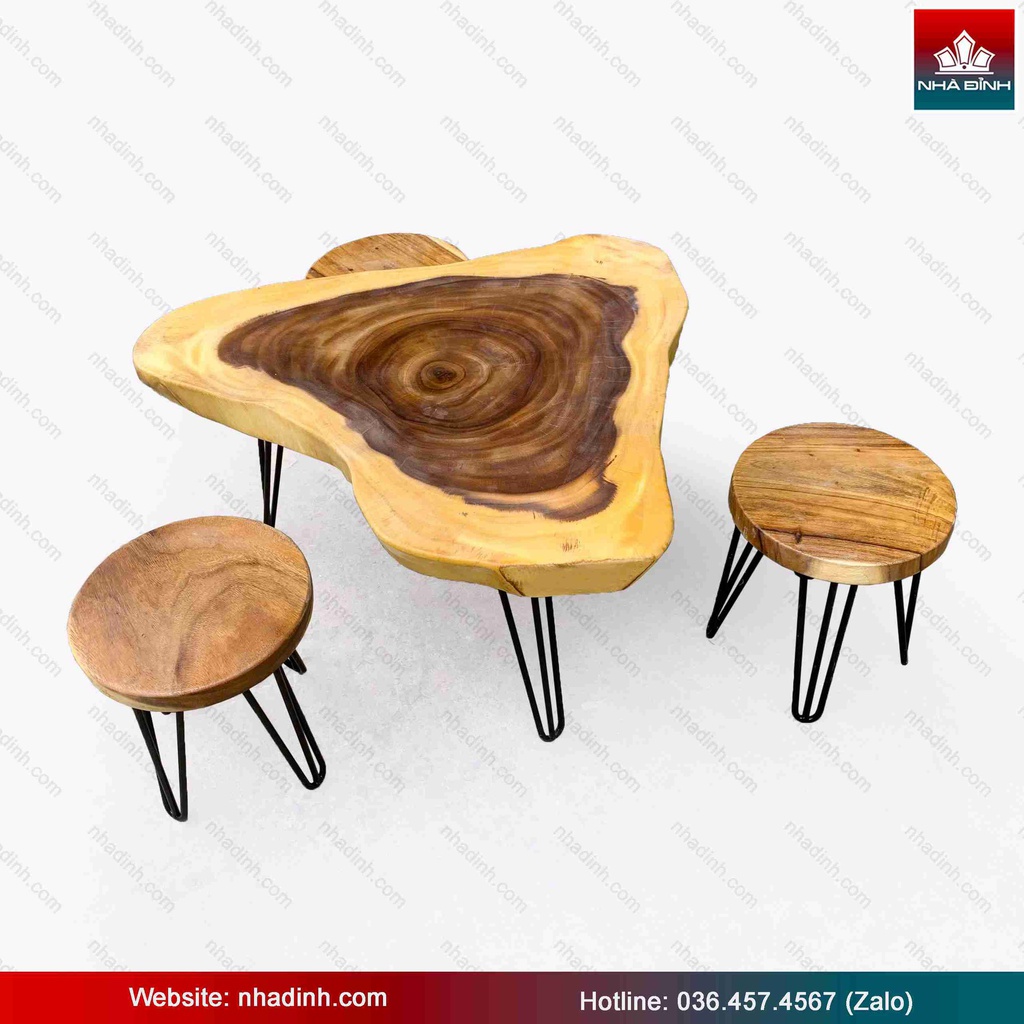 Bộ Bàn Trà 3 Ghế Gỗ Me Tây Nguyên Khối Dài 91 Rộng 67 Cao 45 (cm)