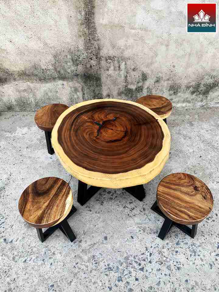 Bộ Bàn Trà 4 Ghế Gỗ Me Tây Đường Kính 80 (cm)