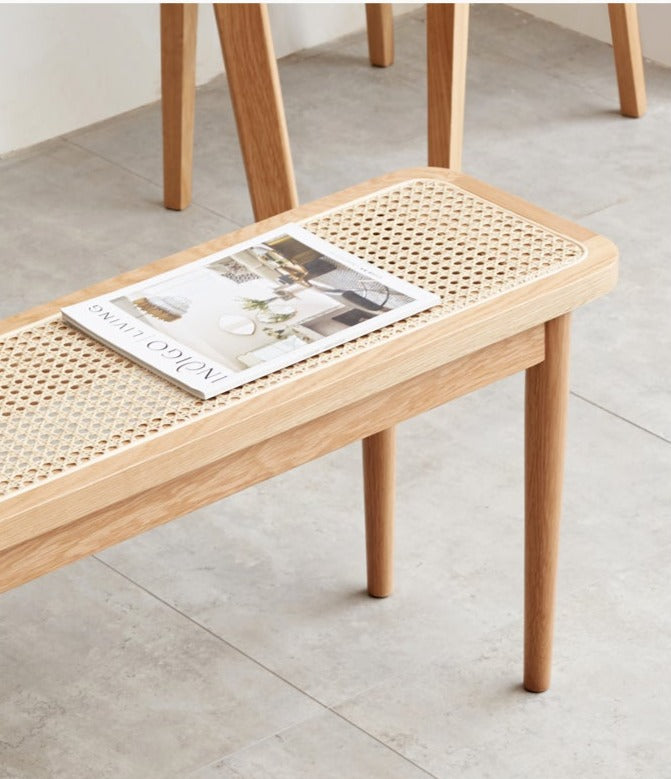 Ghế Băng Gỗ Sồi Mặt Lưới Mây