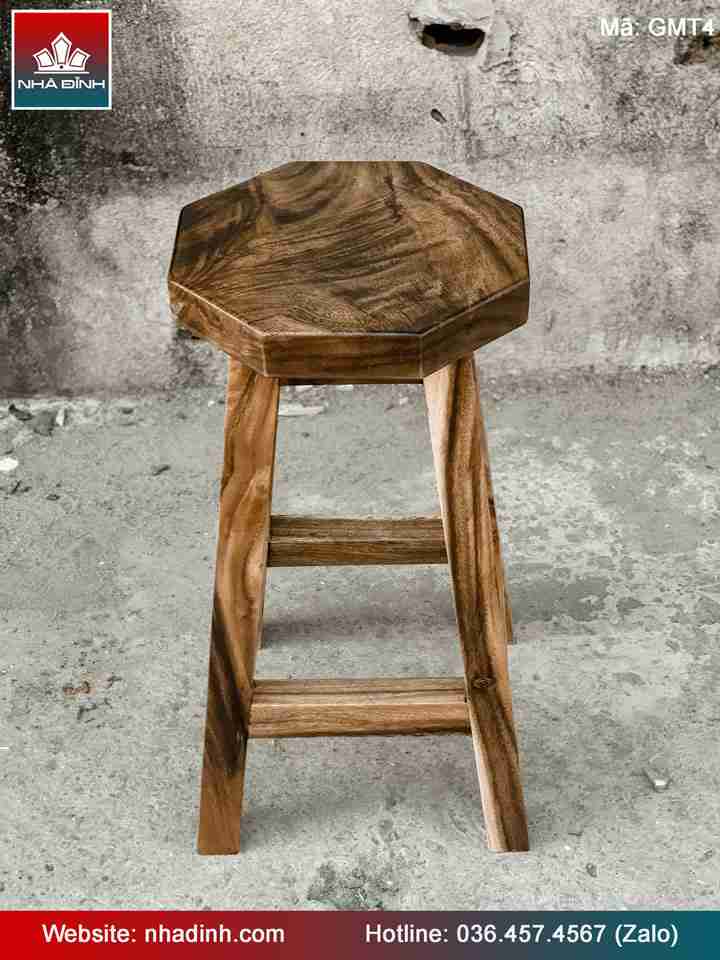 Ghế Gỗ Me Tây Mặt Lục Giác Cao 45 (cm)