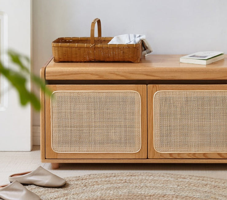 Chất liệu: Gỗ Sồi (Oak) + Mây + Venner Sồi
