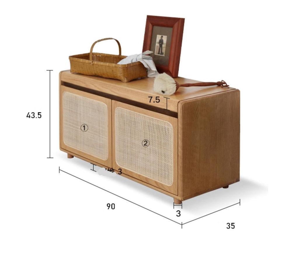 Ghế Mang Giày Kết Hợp Kệ Giày Gỗ Sồi Dài 90 Sâu 35 Cao 43.5 (сm)