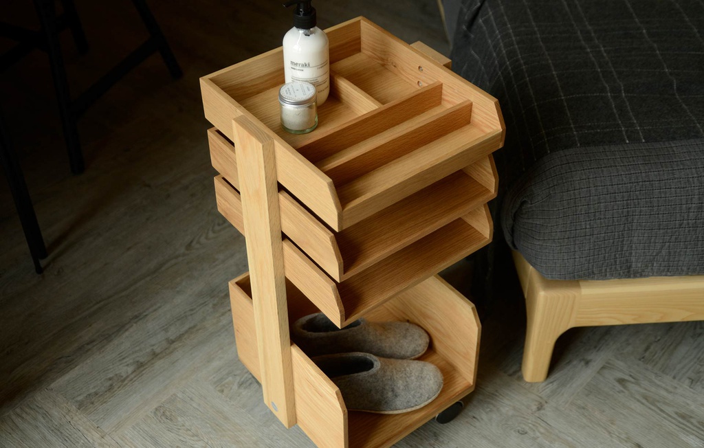 Hộp Đựng Đồ Có Bánh Xe Gỗ Sồi (Oak) Sâu 32 Ngang 31 Cao 65 (cm)