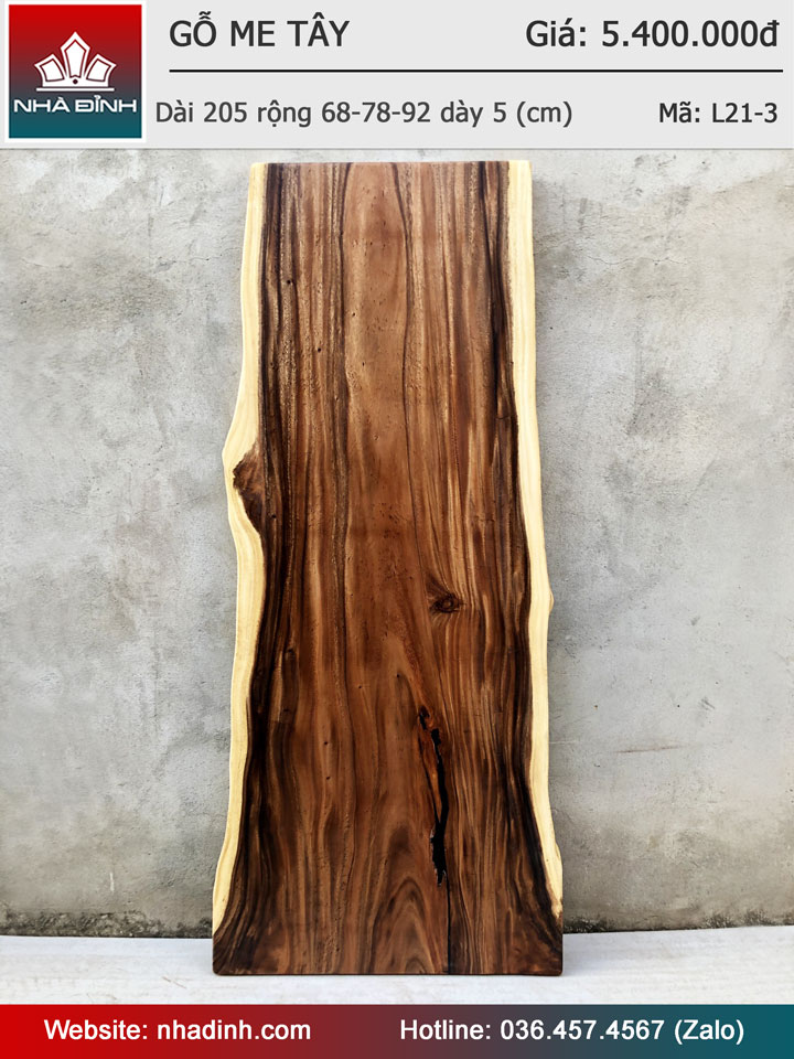 Mặt Bàn Ăn Bàn Họp Gỗ Me Tây Nguyên Khối Dài 205 Rộng 68-78-92 Dày 5.2 (cm)