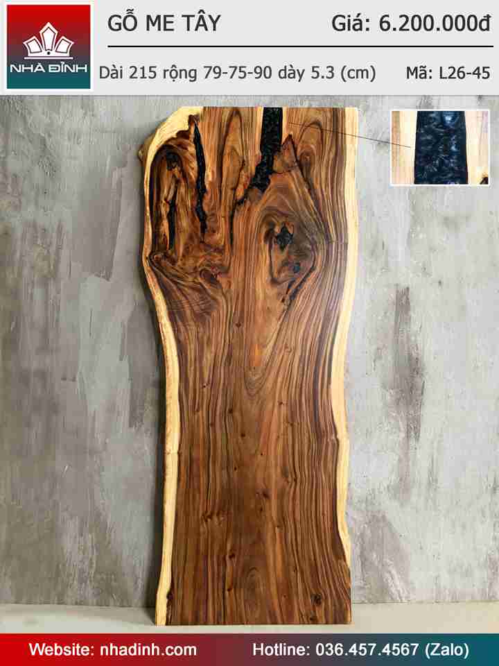 Mặt Bàn Ăn Gỗ Me Tây Nguyên Khối Dài 215 Rộng 79-75-90 Dày 5.3 (cm)