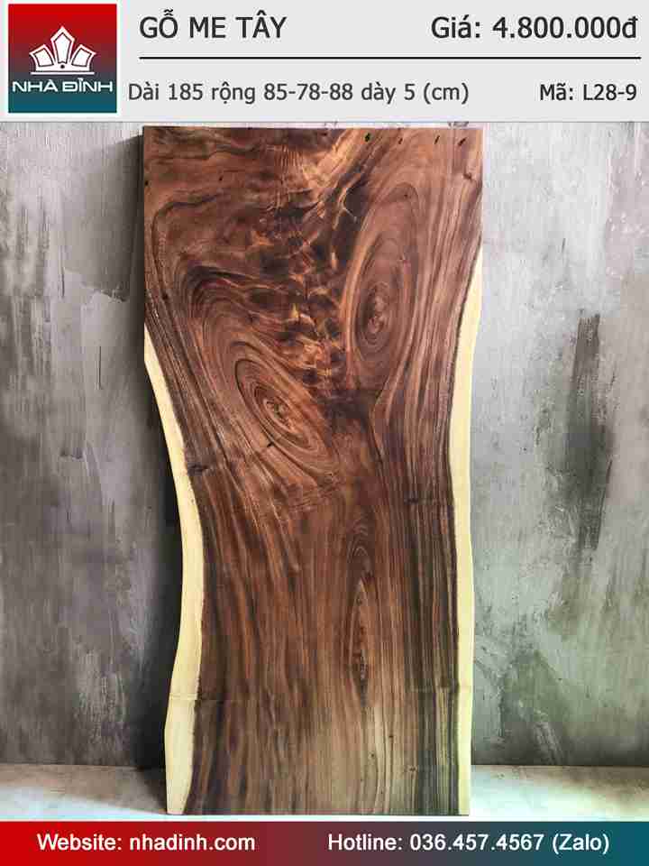 Mặt Bàn Ăn Gỗ Me Tây Nguyên Khối Dài 185 Rộng 85-78-88 Dày 5 (cm)