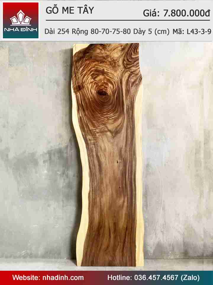 Mặt Bàn Ăn Gỗ Me Tây Nguyên Khối Dài 254 Rộng 80-70-75 Dày 5 (cm)