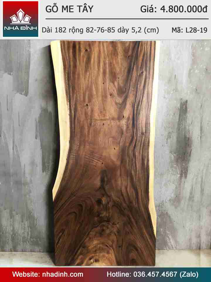 Mặt Bàn Ăn Gỗ Me Tây Nguyên Khối Dài 182 Rộng 82-76-85 Dày 5,2 (cm)