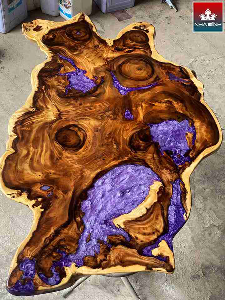 Mặt Bàn Gỗ Me Tây Kết Hợp Epoxy Dài 120 Rộng 60 Dày 4 (cm)