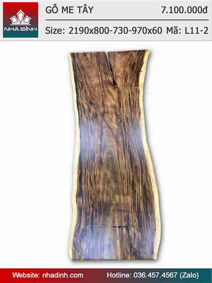 Mặt bàn gỗ Me Tây nguyên khối dài 2m19 rộng 80-73-97 dày 6 (cm)