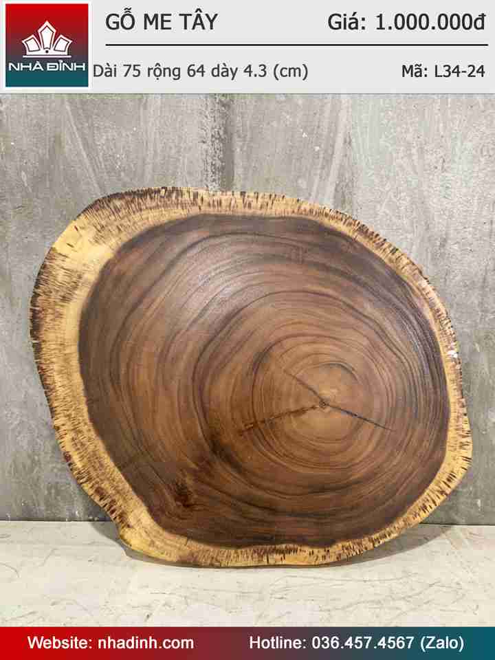 Mặt Bàn Gỗ Me Tây Nguyên Khối Dài 75 Rộng 64 Dày 4.3 (cm)