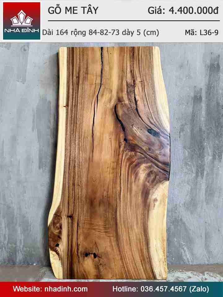 Mặt Bàn Gỗ Me Tây Nguyên Khối Dài 165 Rộng 84-82-73 Dày 5 (cm)