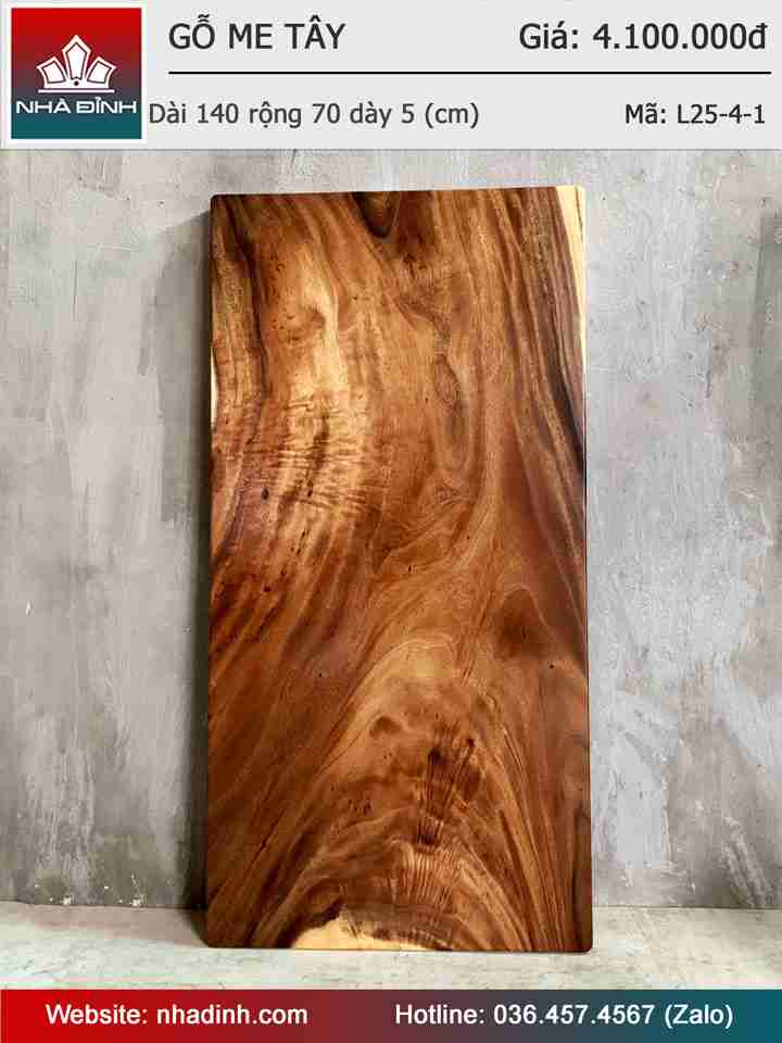 Mặt Bàn Gỗ Me Tây Nguyên Khối Dài 140 Rộng 70 Dày 5 (cm)