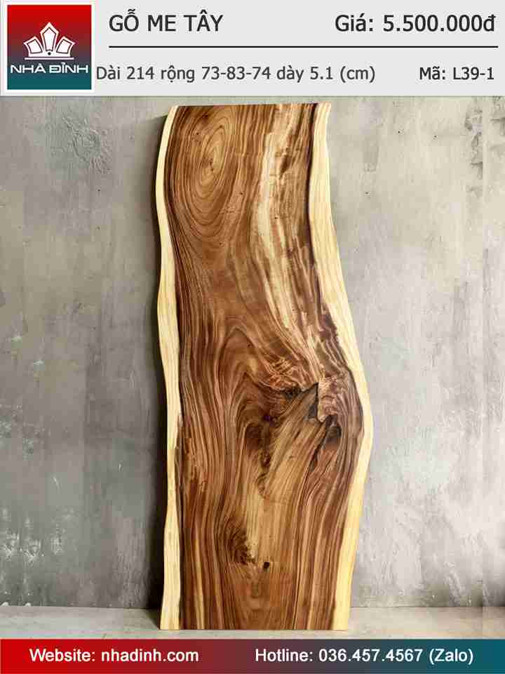 Mặt Bàn Gỗ Me Tây Nguyên Khối Dài 214 Rộng 73-83-74 Dày 5.1 (cm)