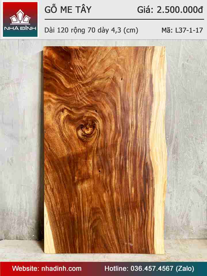 Mặt Bàn Gỗ Me Tây Nguyên Khối Dài 120 Rộng 70 Dày 4.3 (cm)