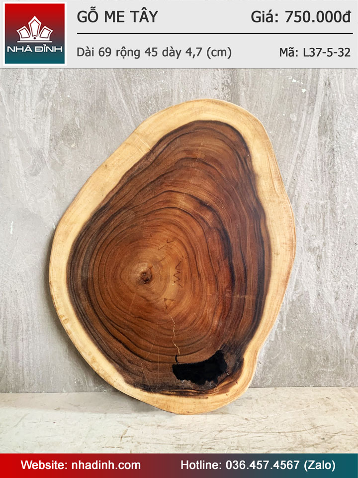 Mặt Bàn Gỗ Me Tây Nguyên Khối Dài 69 Rộng 45 Dày 4.7 (cm)